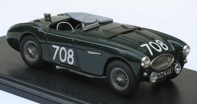 1/43rd scale white metal model of the Donald Healey factory team Austin Healey 100S as driven by Lance Macklin to 8th in class and 36th place overall in the 1955 Mille Miglia road race. Model is handbuilt in England by SMTS exclusively for mimodels, and is in New Condition, mounted on plinth with outer box.