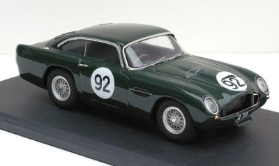 1/43rd scale white metal model of Aston Martin DB4GT racer, car number 92 as driven by Innes Ireland to 2nd place overall in the Fordwater Trophy race held at Goodwood on Easter Monday, April 1961.