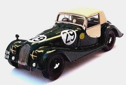 1:43rd scale resin model with white metal and photoetched parts, made in France by SLM43. Morgan 4+4, car #29 as driven by the British team of Chris J. Lawrence and Richard Shepherd-Baron to 13th place overall and a Class Win at the Le Mans 24 hour race in 1962. Superb rendition, supplied in plexi museum case.