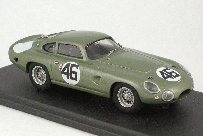 In 1963 two modified versions of the Aston DB4GT were raced by the factory team with the designation DP214. The two cars were entered in a number of races that year. This is car #46 as driven to victory by Roy Salvadori in the Monza InterCoppa race held in 1963.