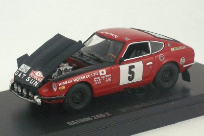 Nissan Motor Co. entry Datsun 240Z car #5 as driven by the team of Rauno Aaltonen and Jean Todt to third place overall in the 1972 Monte Carlo rally