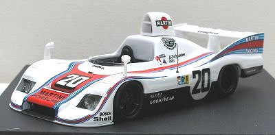 1:43 diecast model of Martini Racing 1976 Le Mans winner driven by Jackie Ickx and Gijs van Lennep. Made by Trofeu with base, plexi cover and outer box.