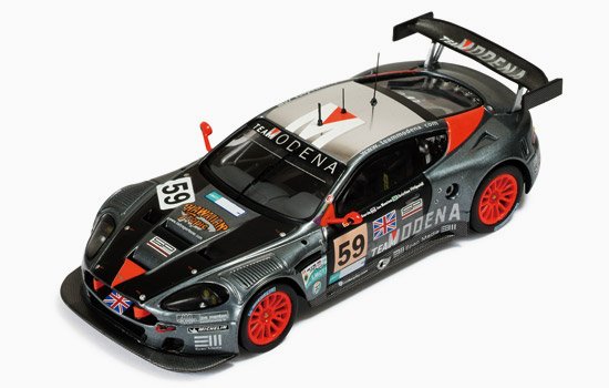 1:43 scale diecast model of the Aston Martin DBR9 as driven at LeMans by Garcia, Menten, and Fittipaldi in 2007. Made by Ixo, mounted on base with plexi cover and outer box.