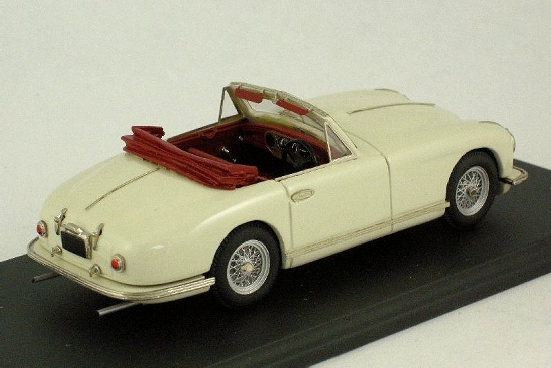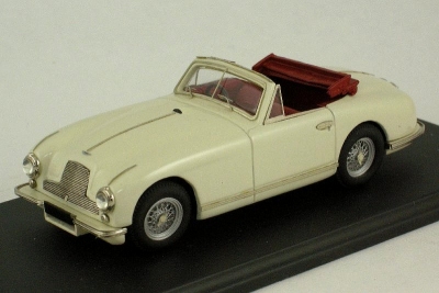 1:43 scale white metal model handbuilt in England by SMTS, open drophead finished in Old English White with dark red interior/folded roof with very fine photoetched wire wheels. Mounted on base with outer box.