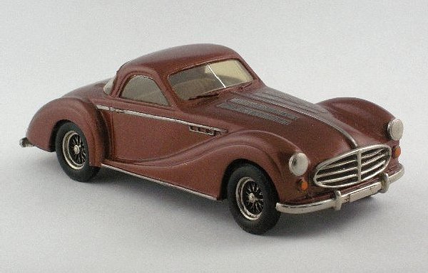 Obsolete 1/43rd scale handbuilt white model of Delahaye 235 coupe with body by French coachbuilders Saoutchik. Very old model made from casting by Western Models in England, with non original box. Nice paint finish with chrome highlighting on bonnet louvres etc well done.