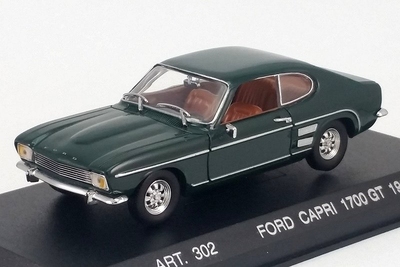 1:43rd scale diecast model made by Detail Cars, mounted on base with plexi cover and outer box.
