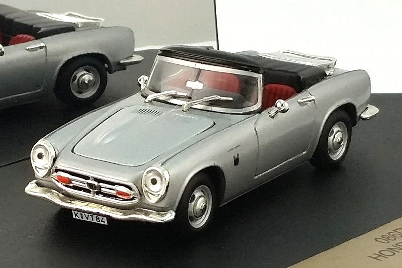 1:43 scale diecast model made by Vitesse, mounted on base with clear plexi cover.
