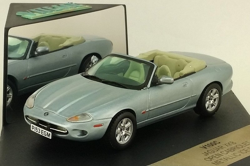 1:43 scale diecast model made by Vitesse, mounted on base with clear plexi cover